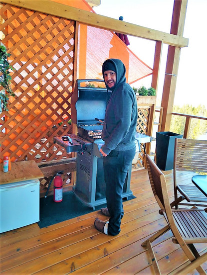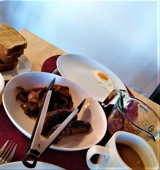 This week we had a fry up with barbecue bacon and sausage, a Greek themed dinner with the best barbecued pork loin I have ever tasted and he even managed to barbecue garlic bread!