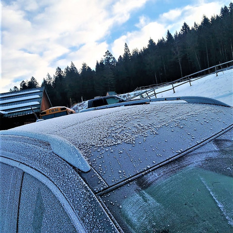 We also got some crazy freezing rain this week, meaning by the time we came to leave the ranch to do our weekly food shop, our car was frozen solid.