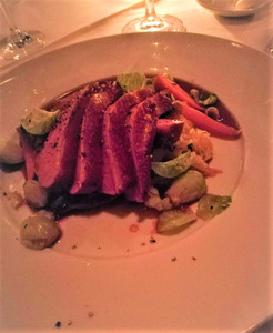 Having already eaten our body weight in cheese and chips we skipped starters and Rich ordered a main of "Poached Chicken Under Hen of the Woods & Crispy Skin Roulade" whilst I opted for "Yarrow Meadows Duck with Crispy Duck Confit" (each meal approx CA$40/£25), although I couldn't resist a quick glass of Prosecco to make up for the fact that I was a drink behind. We skimmed the wine menu and promptly ordered pretty much the cheapest red we could find, which turned out to be a very nice Pinot Noir, and somehow managed to clear our plates.